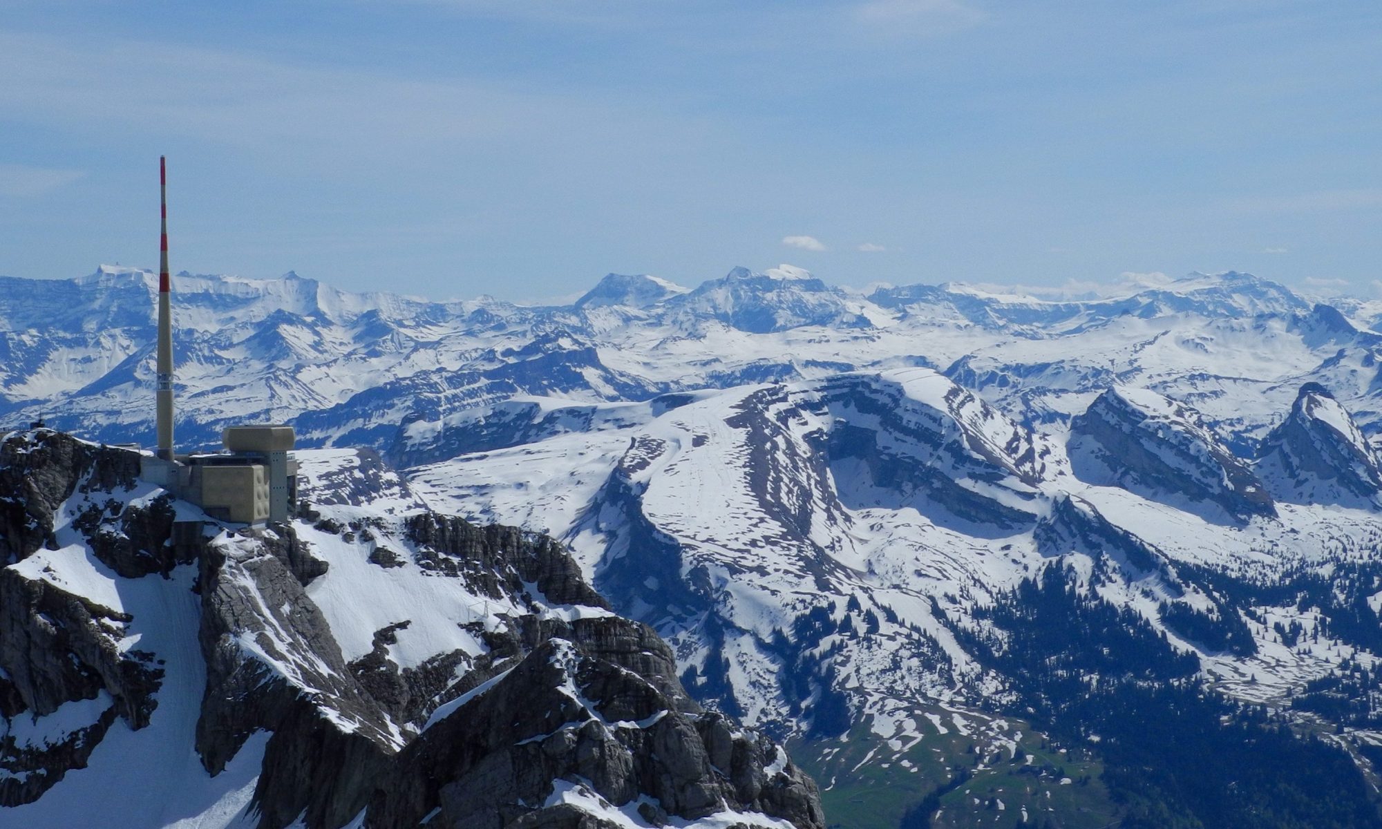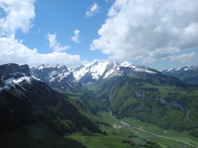 Der Kronberg bietet für jede Windrichtung einen Startplatz. Von hier aus sieht man direkt an den Alpstein mit seiner Westflanke.